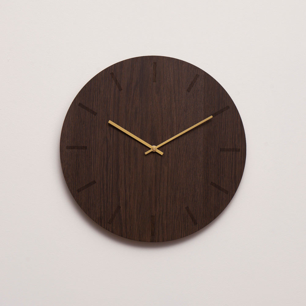 Une magnifique horloge murale au design épuré, dotée d'un cadran rond sculpté dans du chêne foncé. Le grain du bois, bien visible et variable d'une horloge à l'autre, rend chaque pièce absolument unique. Le bois foncé s'intègre harmonieusement dans tout intérieur nordique moderne et apporte du caractère à votre décoration murale. Vous pouvez choisir la couleur des aiguilles en fonction de l'effet recherché.