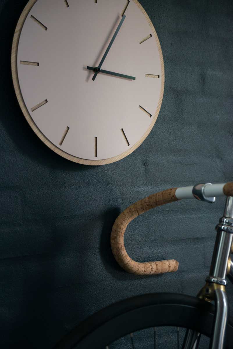 Une expression lumineuse, minimaliste et nordique. Cette horloge murale, avec son socle en placage de chêne clair et son cadran en linoléum rose poudré orné d'index gravés, incarne la simplicité. Choisissez des aiguilles assorties ou contrastées et laissez-les définir l'allure finale de votre horloge.
